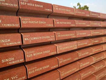 Major Somnath Sharma's name on the Tyag Chakra (Circle of Sacrifice), National War Memorial, India.