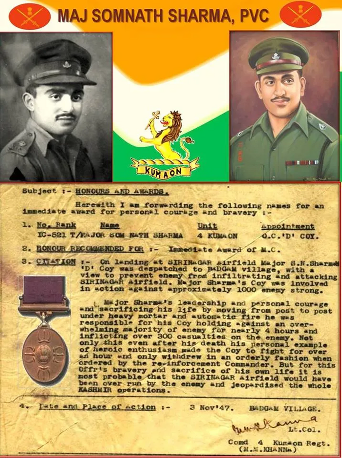 Major Somnath Sharma's PVC Citation