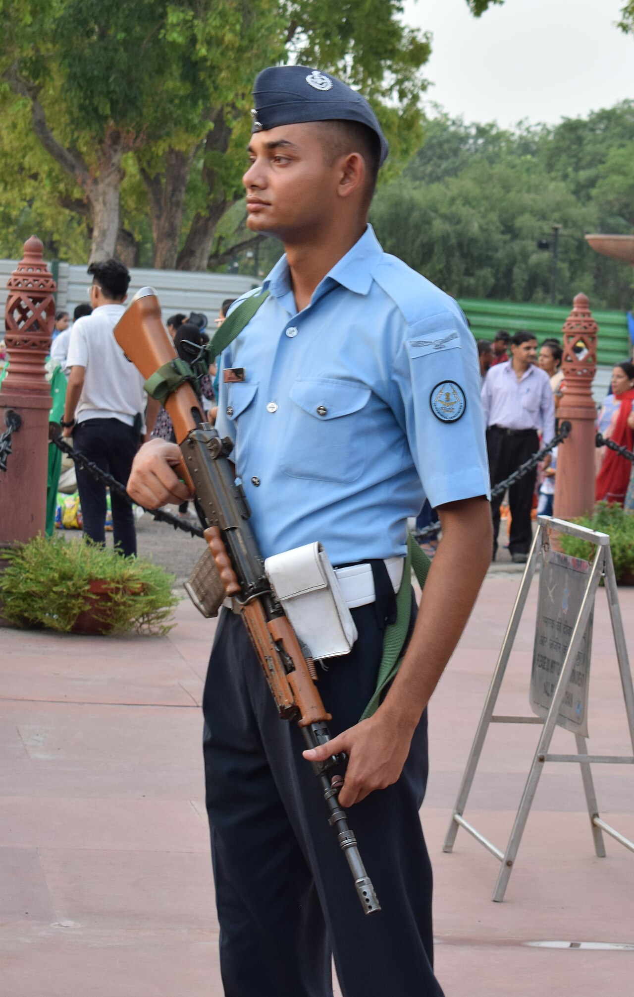 Indian Air Force Soldier guarding India Gate.jpg