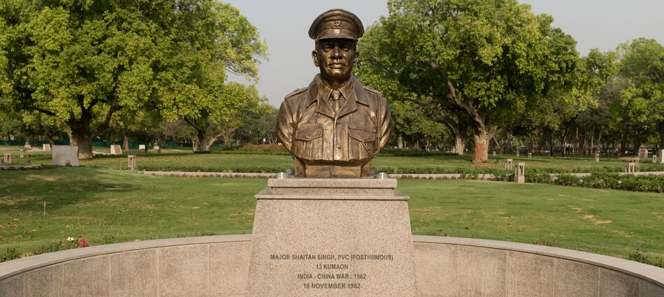 National War Memorial's Param Yodha Sthal, a dedicated area within the memorial complex which honors Param Vir Chakra awardees, India's highest wartime gallantry award, and includes a bust and a bronze relief of each of 21 recipients, has Shaitan Singh's bust and a bronze relief.